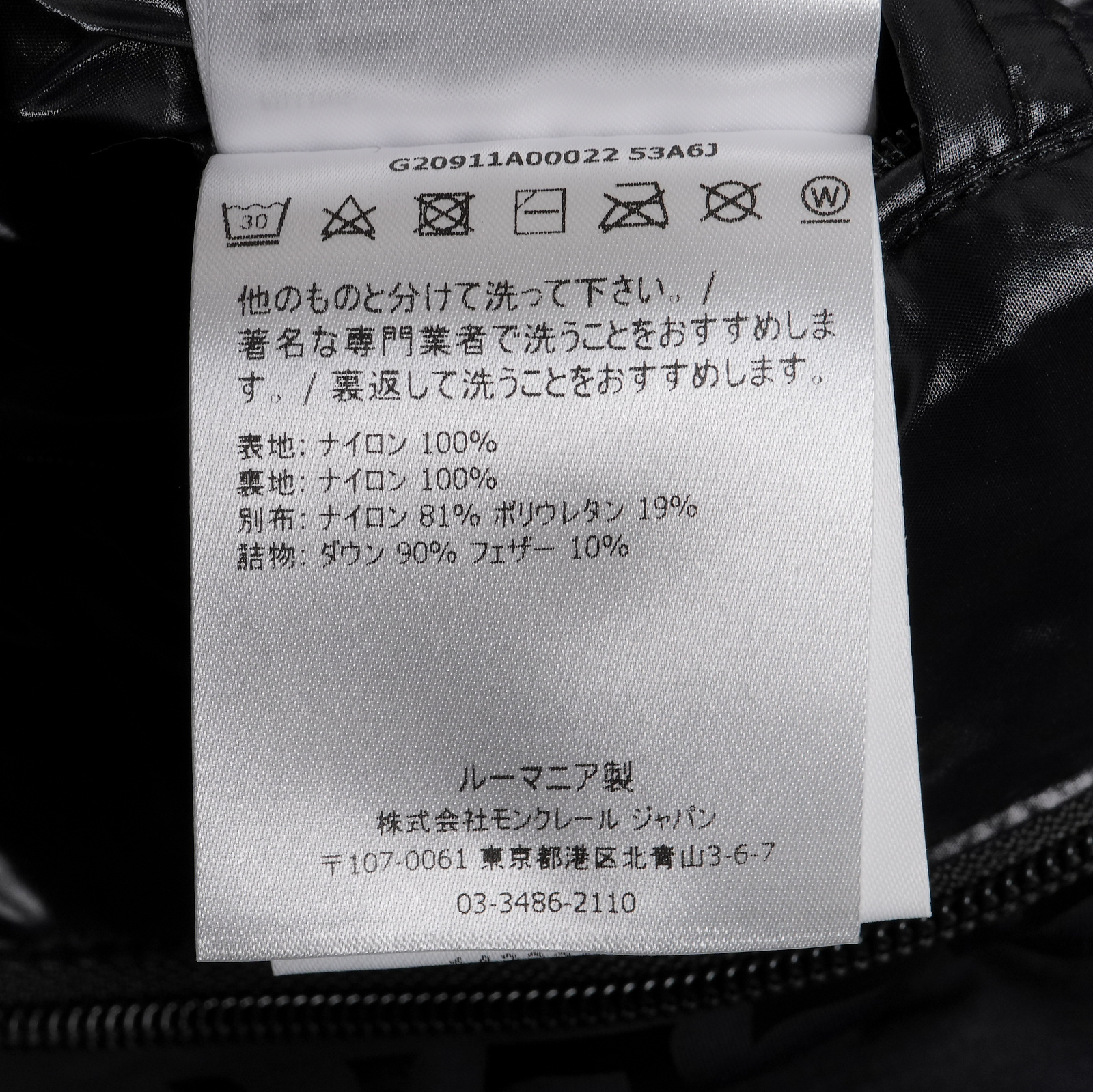 | 素材 | 表地:ナイロン100% 裏地:ナイロン100% 別布:ナイロン81%ポリウレタン19% 詰物:ダウン90% フェザー10% |